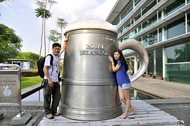 图中这只啤酒杯是世界上最大的锡制啤酒杯。由皇家雪兰莪锡器厂制作完成,已被载入吉尼斯世界纪录,已经成为这里的标志性建筑之一。