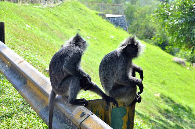 在瓜雪皇家山上,远眺一望无际的雪兰莪州西海岸怡人景色,或逗玩四处游荡的银叶猴,都是件赏心乐事。成年的银叶猴浑身毛发黑中带银,小猴的毛发则呈现淡橙色。这些温柔可爱的猴子,通常会乖巧的等待游客们投递面包和水果给它们,不似其他长尾猕猴般淘气。