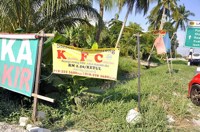 雪隆的人会在周末驱车北上适耕庄,有许多摄影爱好者,也有为了品尝当地海鲜美食的玩家。在稻田后面,听说还有许多果园,售卖新鲜水果。天气太热,我们没有去看果园。只是旁边有卖新鲜水果和鲜榨果汁的,买了块木瓜,买了瓶沙梨汁……味道千奇百怪啊~~~~