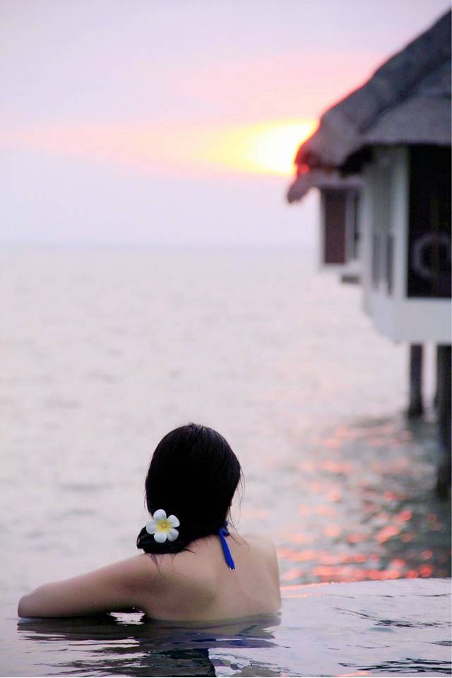 头戴一朵鸡蛋花,捧着一杯冰镇果汁,漂在无边泳池欣赏落日,让心灵放空,那是一种奢侈……