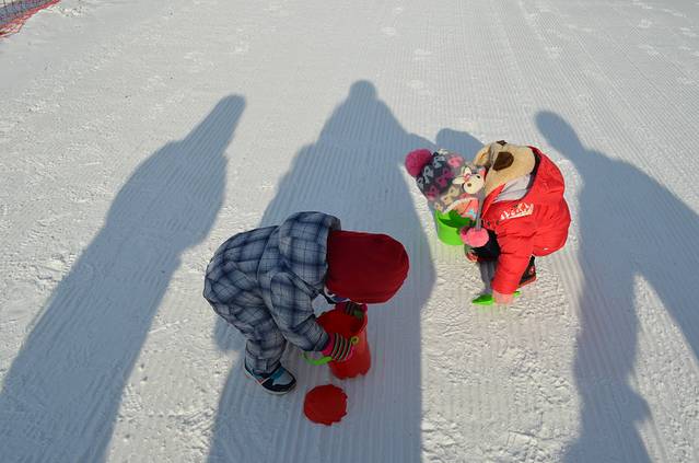 玩耍起来的小朋友们,都撒欢儿了。美林谷滑雪场的冬天白雪皑皑,虽然是人造雪场,但设计非常合理,分为初级道、中级道和高级道,另开设了儿童玩雪区域,比较人性化。