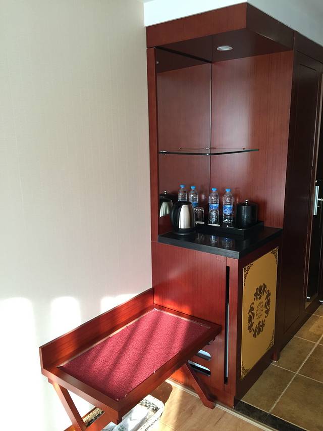 本次入住的是家庭大床房(含早)。房间的面积大约30平米,房间的窗子是朝阳的,可以看到雪场,床品很干净,房间味道并不大,卫生间稍有些味道。房间内提供的两个类似于沙发的塌位。房间内的迷你吧比较简洁,只是提供了两瓶矿泉水,感觉物品有点少(反正我不会消费)。卫生间内的卫浴设施没有品牌名称,确实干净整洁,让我纳闷的是浴室的防滑垫是铺在地板上的。热水是5秒速热的。另外房间内插座不适合苹果手机充电,使人感到些许不便。