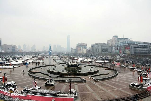 泉城广场是山东省省会济南的中心广场,地处山、泉、河、城怀抱之中。环顾四周,北览旧城区古风新貌,西观趵突泉喷涌潺湲,南眺千佛山青翠绵亘,东望解放阁清雅如画,是市民休憩盘桓之胜地。广场东西长约780米,南北宽约230米,占地约250亩。自西向东主要组成有:趵突泉广场、济南名士林、泉标广场、下沉广场、颐天园及童乐园、滨河广场、荷花音乐喷泉、四季花园、文化长廊、科技文化中心及银座购物广场等十余部分。