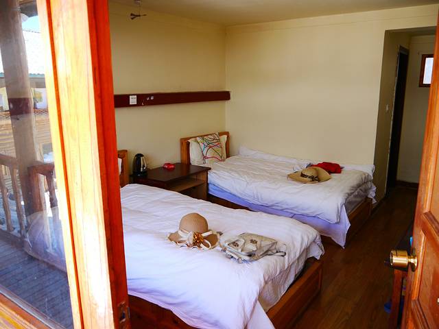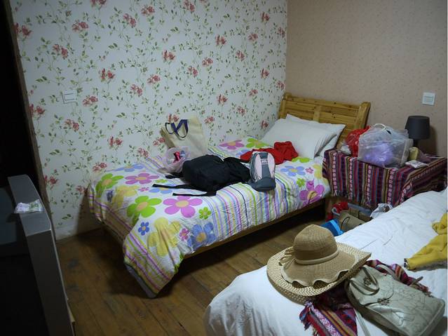 因为临时决定来的,所以没有定旅舍。大名鼎鼎的海地生活在2周前就客满为患,我们 辗转找到一个双廊的村民老伯伯。老伯伯是白族人,汉语说的也不好,连比划带大声吼,才完成了住他们家庭旅馆的计划,70元/标间。家里是新盖的楼房,很漂亮,典型白族设计。