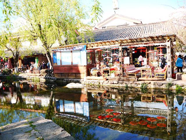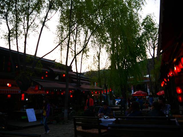 束河,我认为比古城更适合旅行的人。因为那里白天喧闹,晚上静谧。想要安静,就住去靠里面的客栈,晚上几个文艺青年凑在一起,敲鼓唱歌、喝酒聊天。想要热闹,住在商业街附近,逛街、酒吧,一个都不少。古城相对而言太喧闹,太商业化了。总之,想要入世寻艳遇,去古城吧;想要入世思人生,来束河吧。大隐隐于市,体验一下闹世中的那丝心灵的安宁。