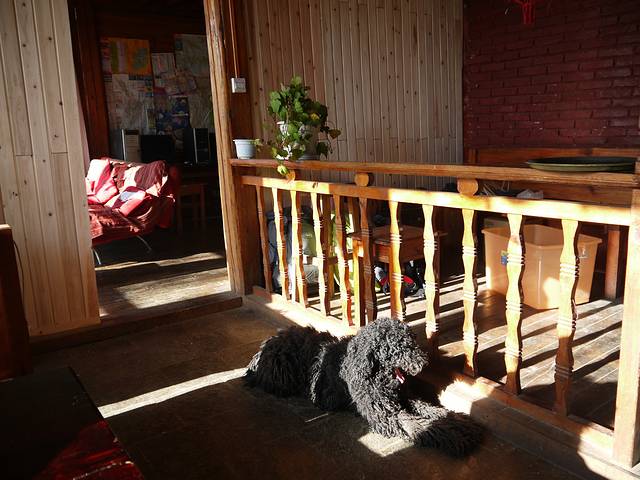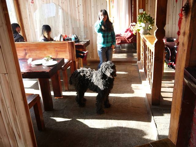 橡树客栈里面还是很温馨的。有家的感觉。顺便提一句,桌子上那块桌布,和我在西塘买的围巾一样一样一样的,我伤心。虽然伤心,还是坚强的围着出去拍照了。。。。。