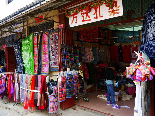司机貌似不怎么开心~不过我们玩的挺开心,周城有好几个扎染坊,东西很便宜,比古城里面的店便宜很多,要会砍价哦亲~我买了裙子裤子手帕绣花鞋等一堆(购物狂本性又暴露了),但是一大包也才150元~