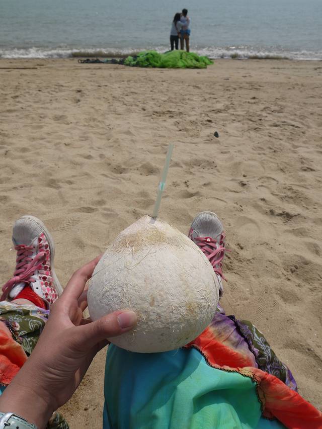 中午就在集美学村里面吃了沙县小吃,很节俭吧!然后下午又到了沙滩。中午两三点是晒太阳的好时机,暖洋洋的。我竟然在沙滩睡着了!行程的最后还让我晒黑了那么多啊,真是欲哭无泪。另一个女孩子租了辆自行车去环滨海大道了,去看了胡里山炮台等,我就啃完鸭翅膀,喝完椰子汁,就昏昏欲睡的睡着了,直到一个多小时后她把我叫醒。