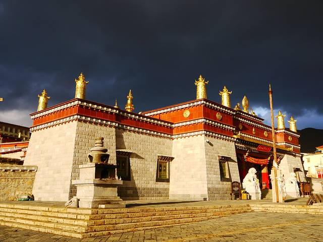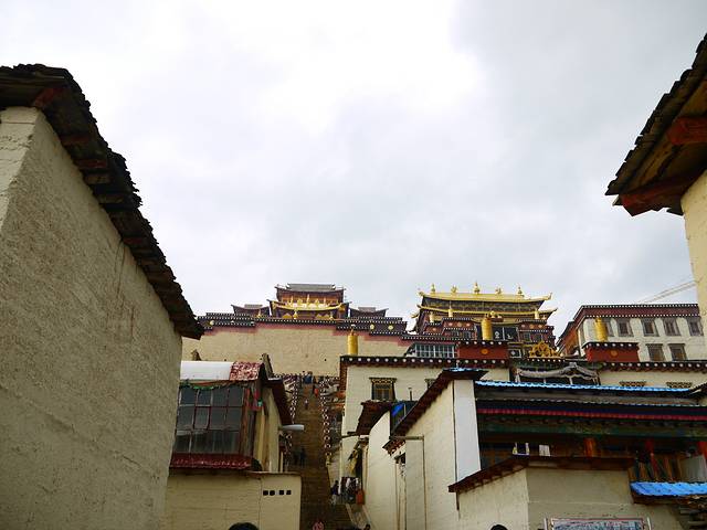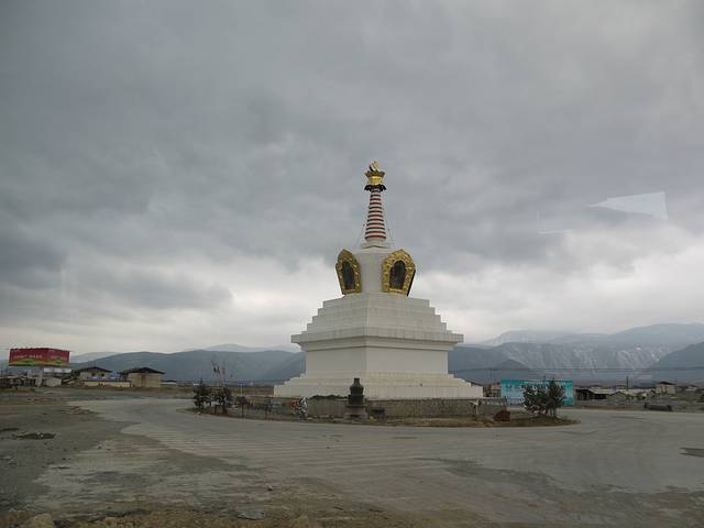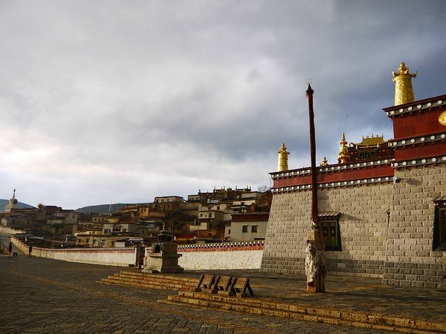 在气喘吁吁的爬了一个小山头后,看到了山上的经幡和隐藏在高处的庙堂。大隐隐于市,颇有荡气回肠的感觉。