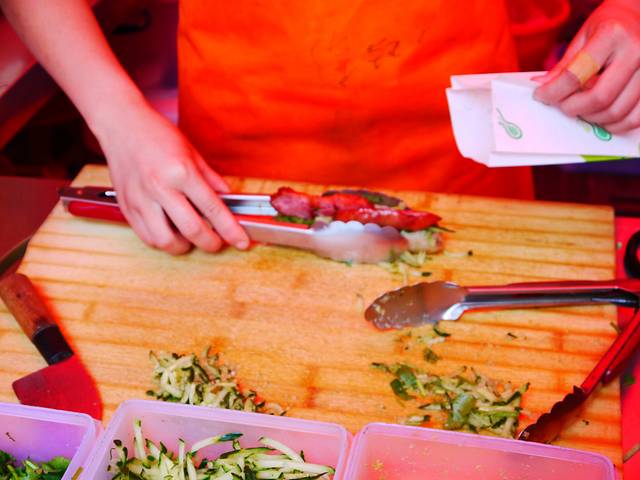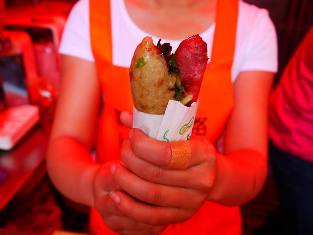 下面的是大肠包小肠~我也觉得比较美味,估计我是食肉动物。特别是做的姑娘还特意拿好了让我拍照,真贴心。