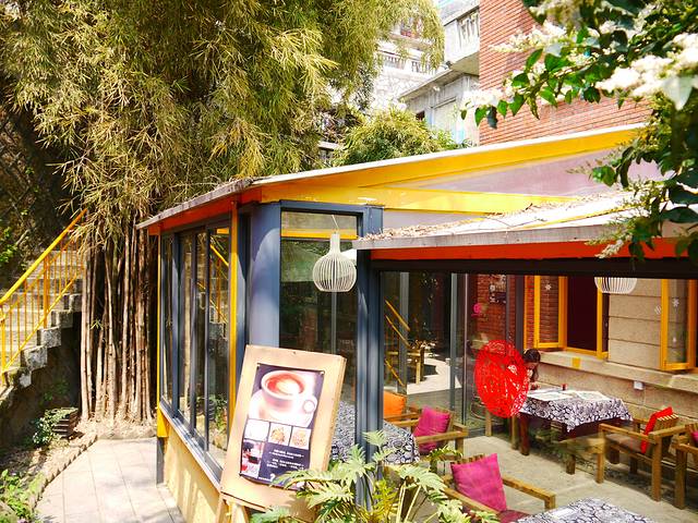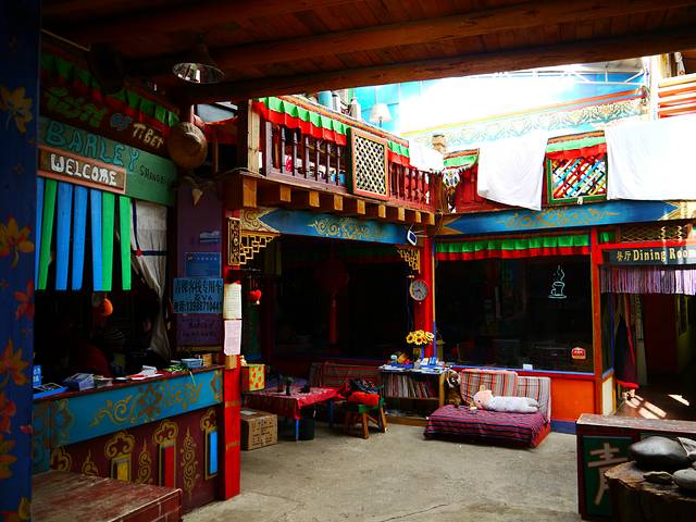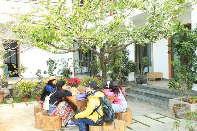 和敏找到一个很幽静的橡树客栈(上图,院子里很温馨),70元/标间。然后换上花裙子开始出来臭美拍照,对了还有吃美食。