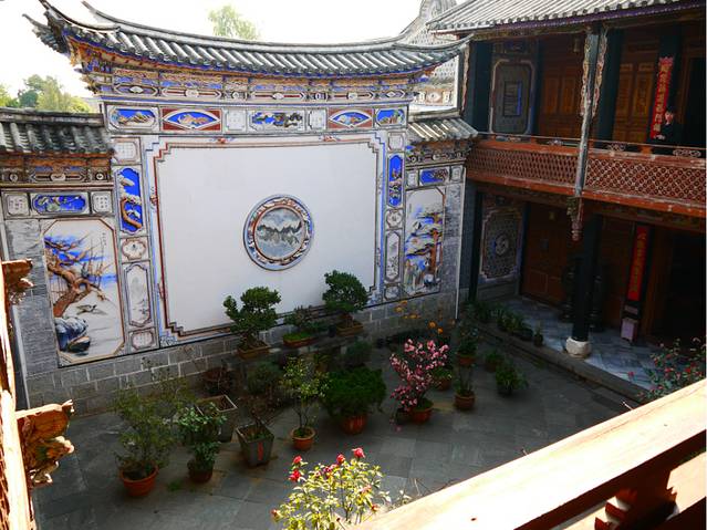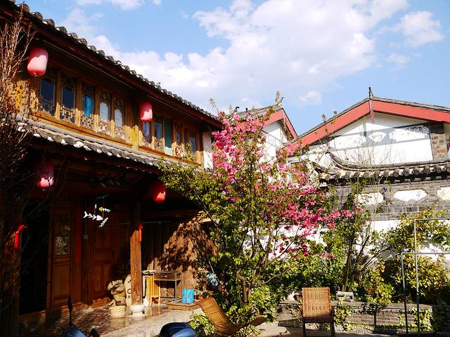 下了车好几个热情的大妈在介绍自家旅馆,我们挑了个慈眉善目的大妈,谈了价格,标间50/天,每个人相当于25元!(物价真的很便宜!而且这25一晚的标间和快捷酒店真的没区别,服务还比酒店热情的多)。旅馆在白族风格的小院子中,这对第一次来云南的我而言,都十分新鲜