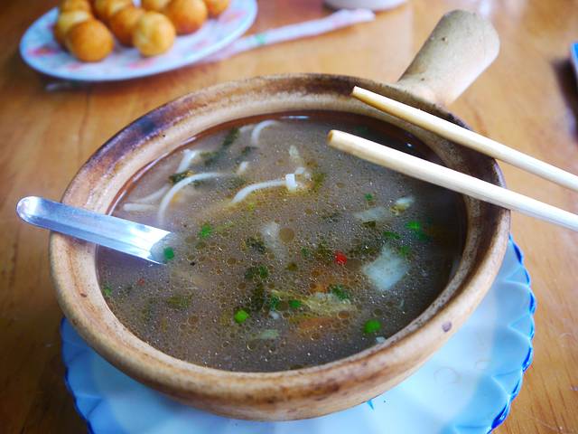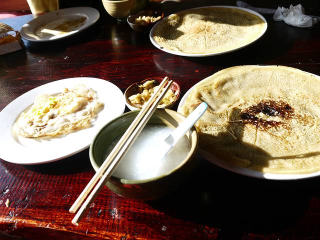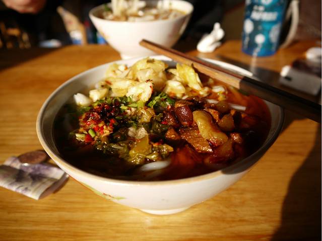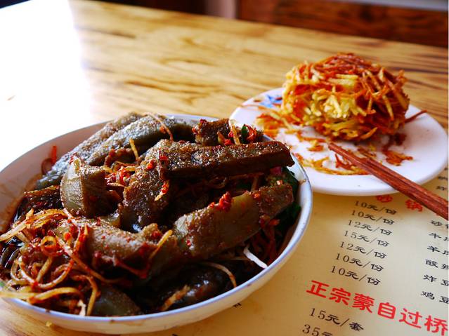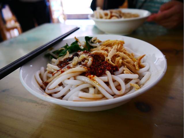 首先是当早饭吃的——洱丝。是店主带我们介绍的,在大理古城外面的一个小早点铺,好像是叫“殷记”,让我想起了殷素素啊,多美的一个姓氏~洱丝酸辣可口,让我胃口大开!而且口感十分好,Q且软糯,如此大的一碗我吃完了竟然还不觉得很饱~(好像是7元)