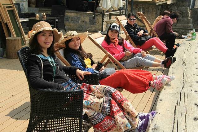 不过,一下船,我先是惊呆了。因为。。。感觉人好多,好丑。密密麻麻的全是人头。亲,我没看错吧?才4月份啊,而且是非双休。到处都是举着小旗子的旅游团。