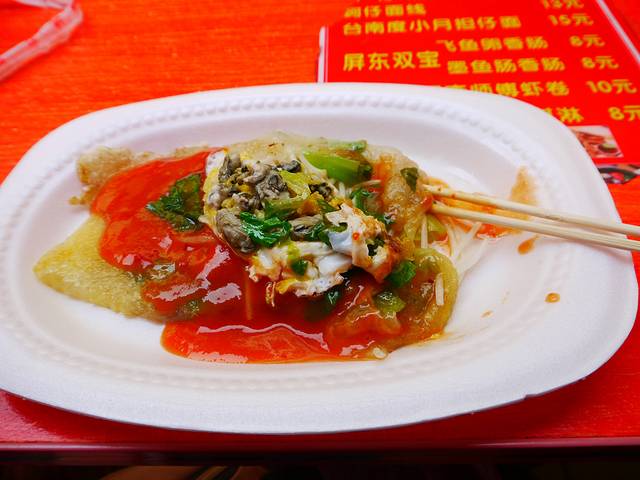 在鼓浪屿轮渡口的那边有个美食大排档,都是些台南小吃。在那里吃了垂涎已久的蚵仔煎(电视剧里看的,但是在南京吃过几次都觉得不正宗),大概是十二三的样子。不得不说,从云南一出来,立马就觉出来物价在蹭蹭上涨了。所以说还是云南的幸福指数高!