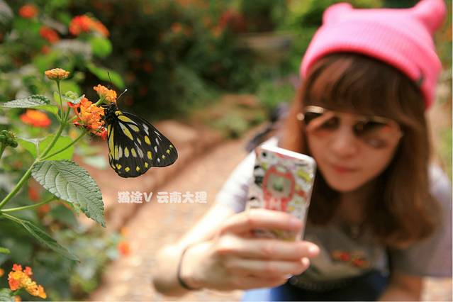 特别想去蝴蝶泉,因为上次没有留下一张自己满意的照片,道路两旁高耸成排的青竹,满天飞着的巨大蝴蝶,还有蝴蝶大棚里跟人互动的各品种彩蝶,都是吸引我再去的原因,上一篇云南游记的背景乐选的就是《蝴蝶泉边》,到了那里我的脑中真的总一直反复播放这首歌。 五年内这里没有任何变化,青竹依旧青翠入天,蝴蝶依旧在身旁飞舞,上次是冬天没有发现大棚原来是个桑拿房,出来时已经是满身大汗,但好在遇到了几只愿意在指尖上停留蝴蝶。