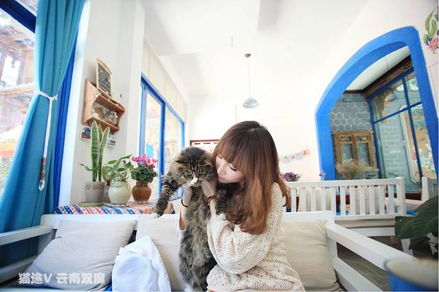 anne的猫窝,是一对年轻情侣开的咖啡店,里面有5只猫咪,每一只都很干净,体型偏大,其中一只像浩楠的黑白花猫抱起来相当费力气,经常摆出各种特萌的表情,眼睛睁得大大的,很专注的看着窗外。店内装饰是爱琴海风格,纯净的白色和蓝色,咖啡拉花也特意是猫猫图案,店里摆着很多猫咪风格的装饰,还有店主和客人给几个妈咪拍的照片,菜单也都是手绘的,咖啡名字就以五只猫名字命名,总之,这个猫窝就是我梦想中的猫窝,人家帮我实现了。喝完咖啡陪完猫咪就结束了双廊之旅,不过一点多钟,想感受双廊的好应该至少小住一下,白天睡懒觉晒太阳喝茶聊天听歌看书,晚上在酒吧街小酌几杯,到微醺的状态最佳,然后找个看的见海景的房间住下,早晨看日出晚上看日落,像猫咪一样悠哉悠哉的生活。