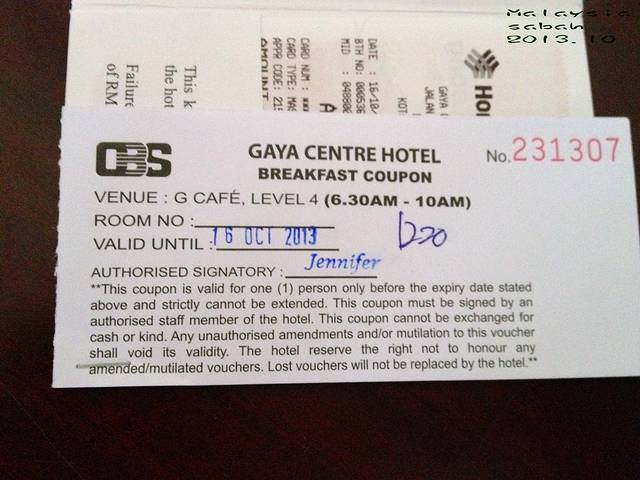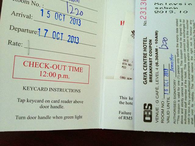 2013.10.19~~10.22 入住KK的加亚酒店Gaya Centre Hotel
