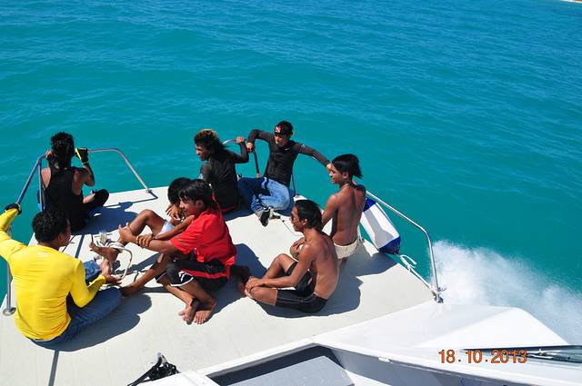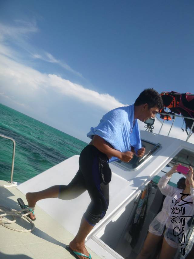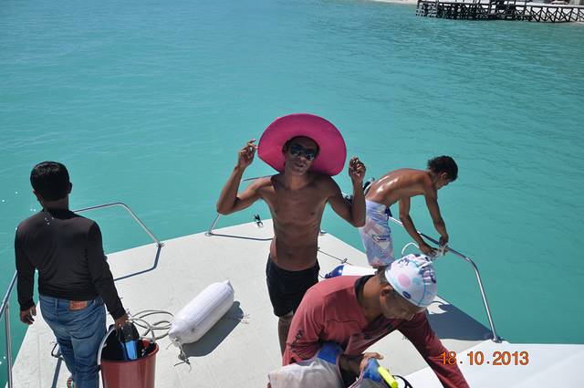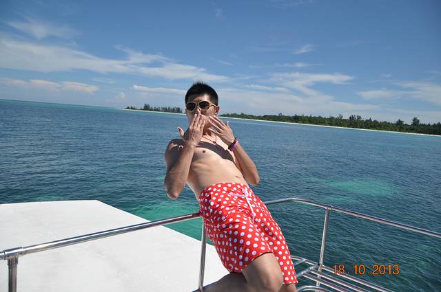 我们拍照的时候遇上岛上的工作人员跑过来要给我们拍合影