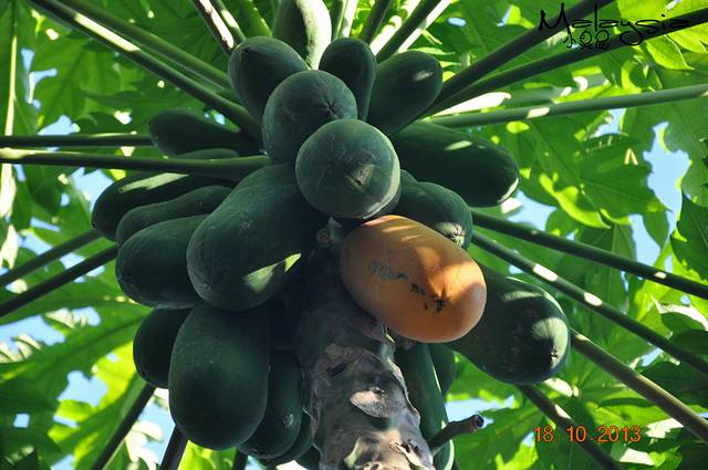 我们拍照的时候发现了这颗大大的木瓜树