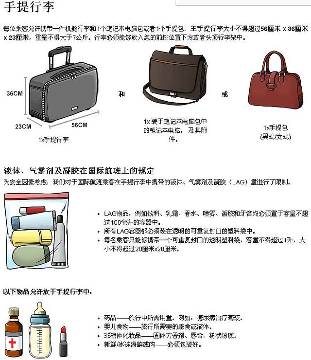 随身行李:每人随身的一个7kg的箱和一个书包。