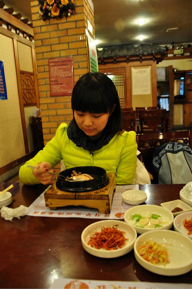 张师傅参鸡汤:地址:延吉市巡警大队对面 电话:(0433)2513737 (9点开门,10:30鸡汤出来。晚上21点关门,人均42元)