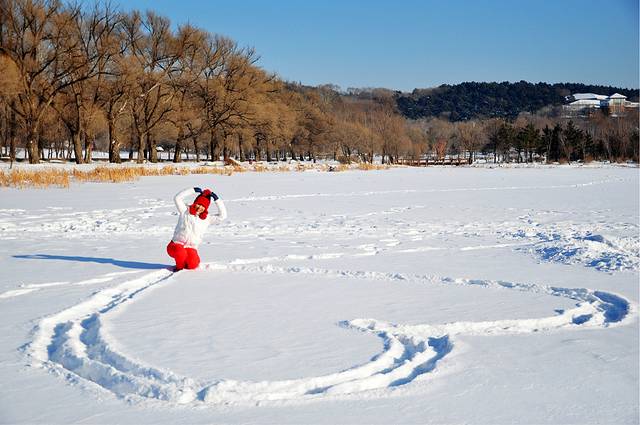 净月潭 门票30 无学生票 看到湖就冲上去打滚 玩出来发现湖边立个牌子:冰薄勿靠近。。