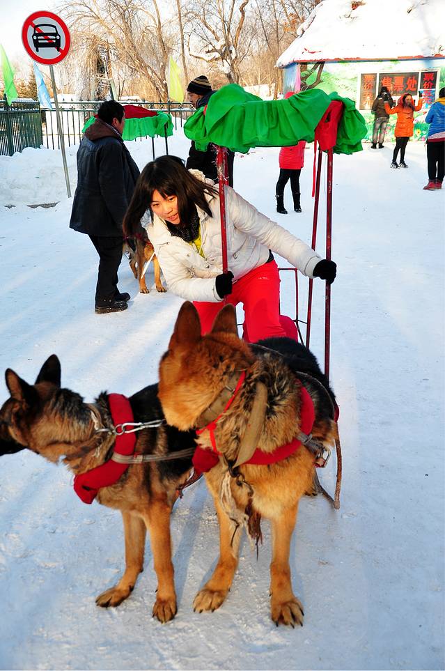 狗狗拉车特别刺激,就是路程好短,20一人~