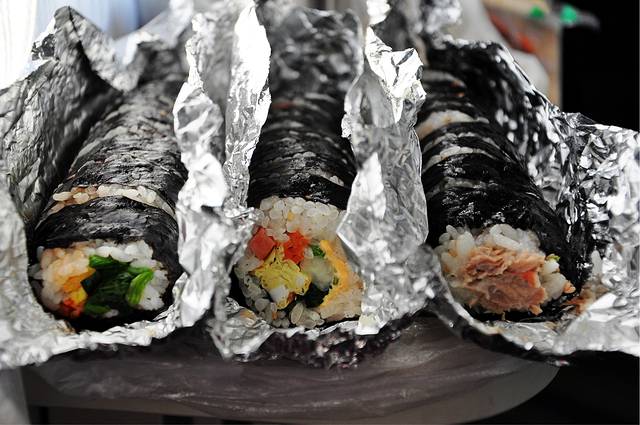 紫菜包饭据说是金家的最好吃~我们去金家总店买的,准备做第二天的早点~7-10块一卷~