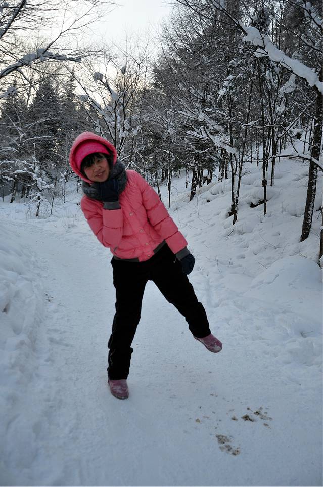其实还可以往下跳跳的,下面的雪还很深,体重有限,只能跳成这样了。。不过也超级爽啊。。玩躲猫猫什么的一定赞!