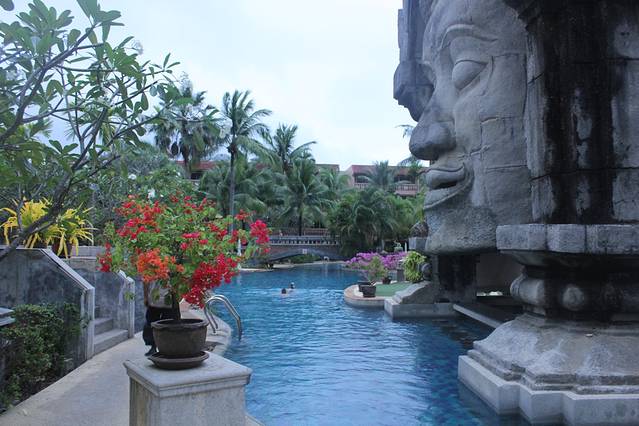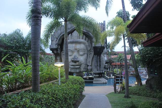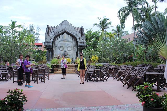 清晨一早起来吃早餐,穿过三个泳池,发现,原来我大兰花酒店真心大啊,昨晚错觉了?自助早餐也是后几天行程中最丰富的。下面是普吉兰花度假村的标志性建筑。