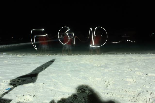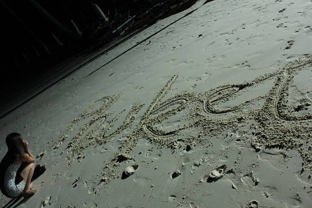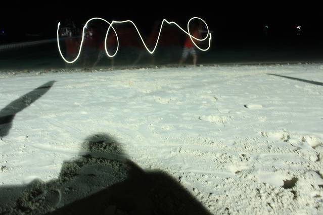 来玩光影把!,码头就我们两个人,我教她玩写字~