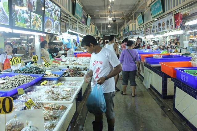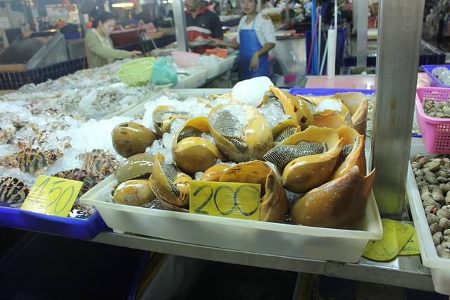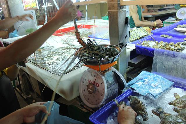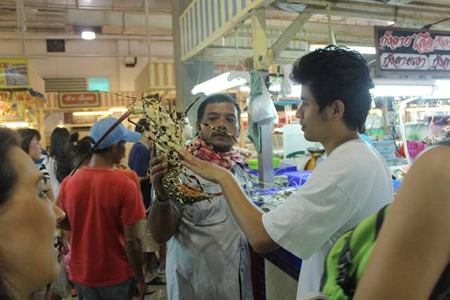 大龙虾有没有? 价格因龙虾大小不同, 但是一定要还价!1000B起码杀个200B把? 卤煮这次就呆了,第一天没还价 1000B的龙虾一只。如果大家实在不会,可以让当地逛市场的泰国人帮买,就看你的魅力了。