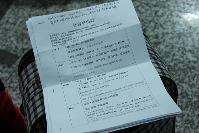 与老大这次出行,真的是不在计划之内的,以前从没有出过国。算是小白一个,老大的闺蜜在9月底约我们一块去泰国游,说实话,早就对这个神奇的过度有过向往了,再加上《泰囧》的火热。于是先上途牛看了一下跟团游的价格以及日程,但其中因为各种原因,她们选了一条芭提雅的线路。而对于海岛完全无抵抗能力的我,还是想走一遭美丽的普吉岛。时间也比老大闺蜜出行的时间推迟了半个多月。事实证明,我们的决定还是很明智的。出发日期:2013年10月18号至2013年10月23号。五晚六日(确实很难请到假,打工族就是这么无奈)。从预定线路到出行,半个多月我们把功课都做足了。