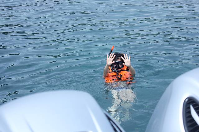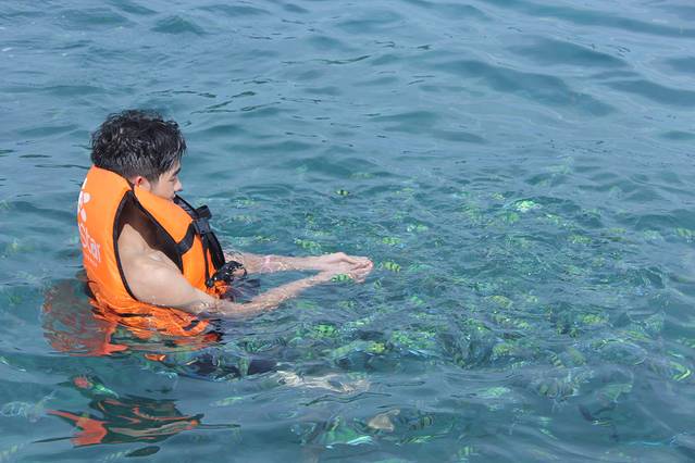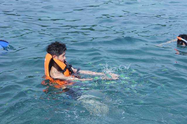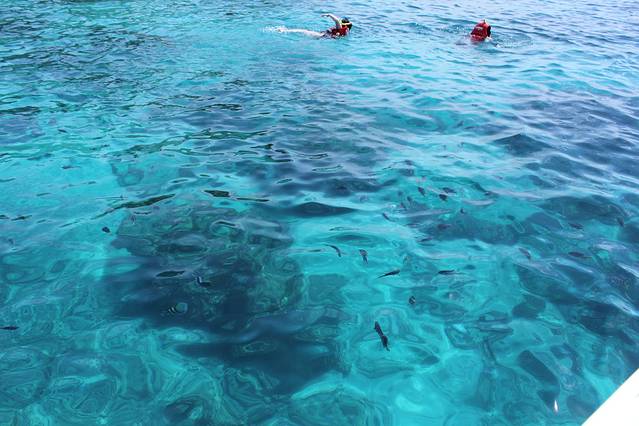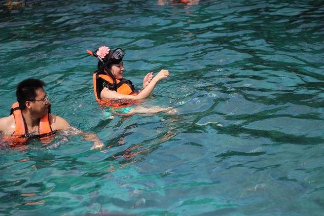 然后就去浮潜!这里是付钱时间最长的,面包SEA STAR 还发给我们,让我们喂小鱼 ...... 我还抓了一条,又放进去了,真是太多了