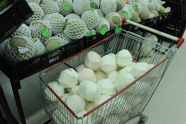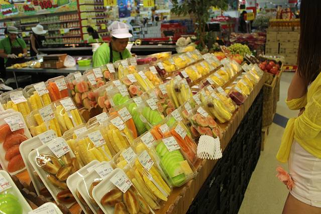 【Big C】 ,热带水果什么的 ,也是各大吃货们必尝的了把? 别以为打好包切好了都是坏水果,都是很新鲜的,不像国内苏果一流, 把坏了的水果烂地方挖掉,然后卖····这点泰国很厚道的。