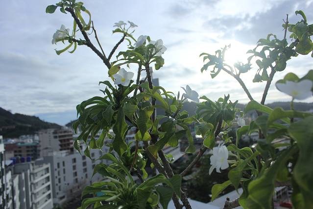 先来到9楼的楼顶 看看地图, swimming pool 也在楼顶 鸡蛋花很漂亮!