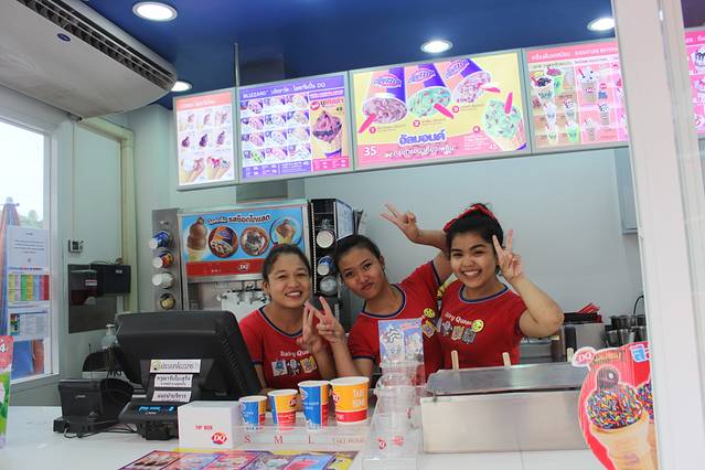 选择这家酒店 大门前的这条街5分钟就能到江西冷的后门, 也是是攻略里面烂篇的Banzaan Fresh market ,DQ也是攻略里烂大街的了 ,确实便宜 一个球才10猪 ,也就是2块钱. 在国内怕是只能买个冷饮把?点了两个什么我也不知道,不是球,一个巧克力 一个草莓 79猪。为了方便,大家记住泰铢除以5就是人民币。算起来是不是方便多了。