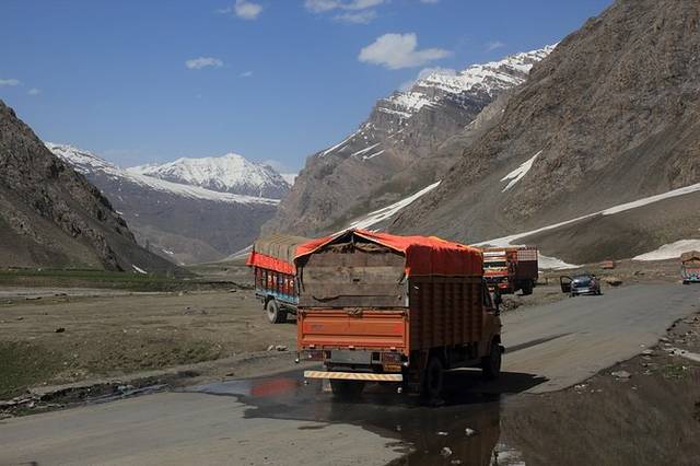 第二种是公路,现在有两条公路可以进入列城,一条是从喜马偕尔邦的Manali经过世界海拔第二高的垭口唐格拉山的马列公路,虽然这一段只有400多公里,但是由于印度的基础设施实在太差了,所以要颠簸两天。第二条是从克什米尔的Srinagar经过Kargil两天到达列城,路况比马列公路稍好,但是风景没有马列公路好。两条公路都受到气候的限制,每年只是开放几个月,其他时间都是被大雪覆盖。马列公路甚至要等到六月中旬才会通车。