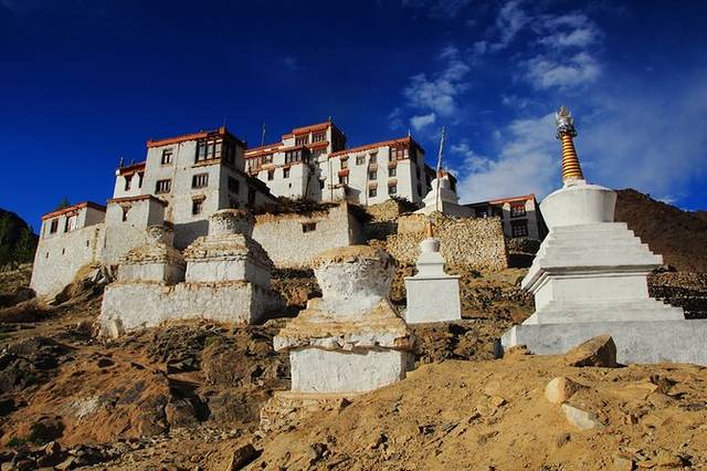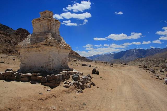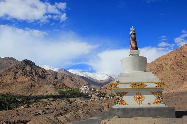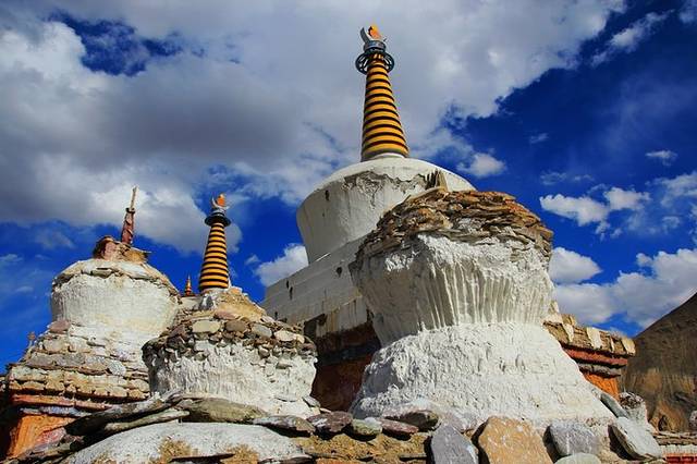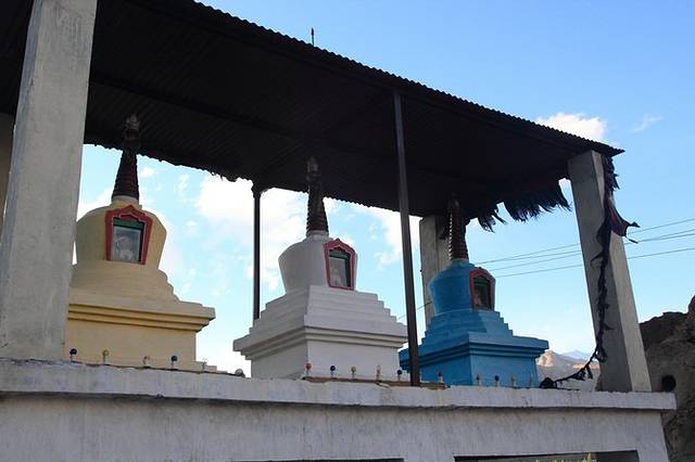 在西藏,只见过这种白色佛塔,而在拉达克,佛塔却是五颜六色的,不仅有白色的,还有红色,黄色,蓝色,紫色,黑色等颜色