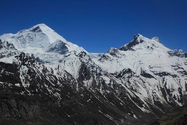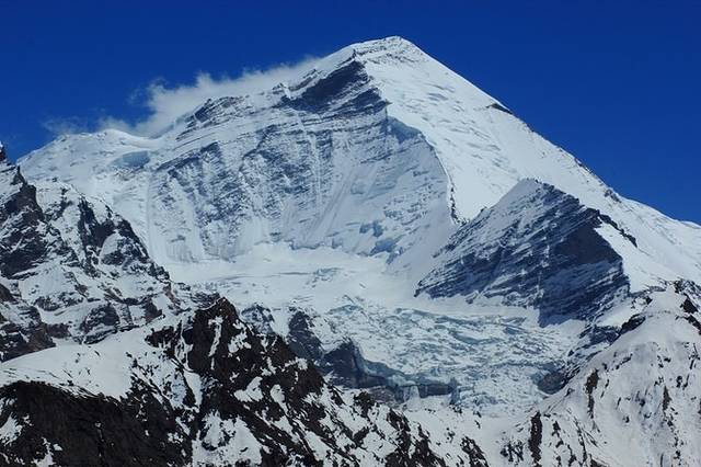 四周雪山环绕,然而怒昆峰只能露出一点点。