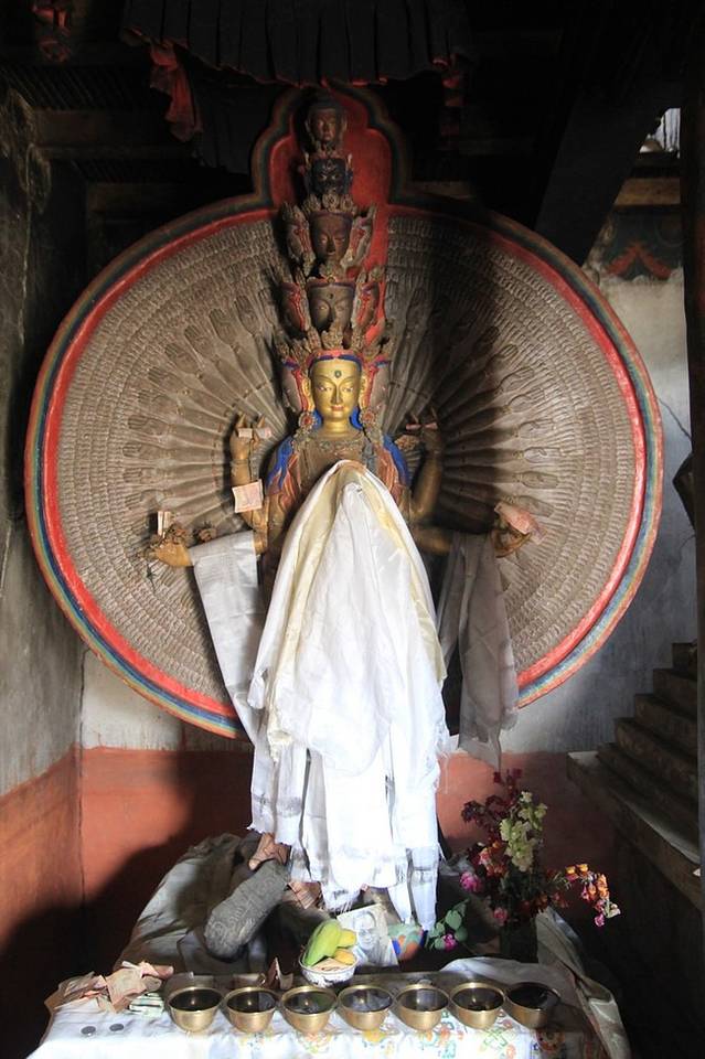 列城旧王宫的山上,还有一座小寺庙,个人认为这个寺庙更值得去,里边有一尊千手观音,十分精美。庙里供有嘉旺竹巴活佛。