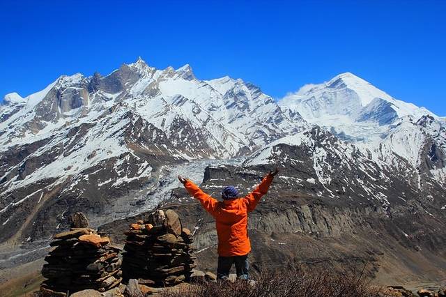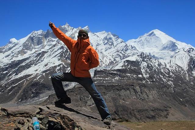 美丽的怒昆峰就在眼前,好似触手可及,顿时疲惫,疼痛都抛到了脑后,这一路的辛苦看到这美景也算是值得了,在垭口避风处休整,拍照,午餐,然后原路下撤