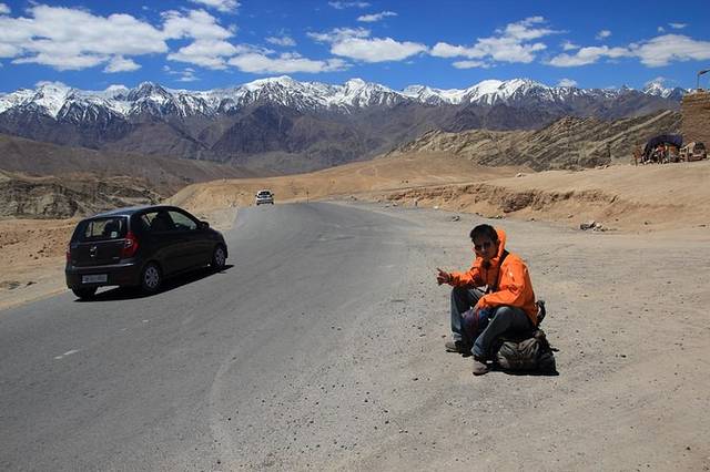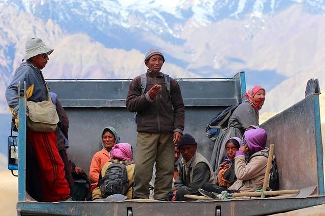 拉达克地区交通不是很方便,有时候一天只有一趟班车经过,于是只得在路边搭车。大部分的时候搭车是需要给钱的,偶尔有些私家车司机比较好心,就免费搭乘一段了。
