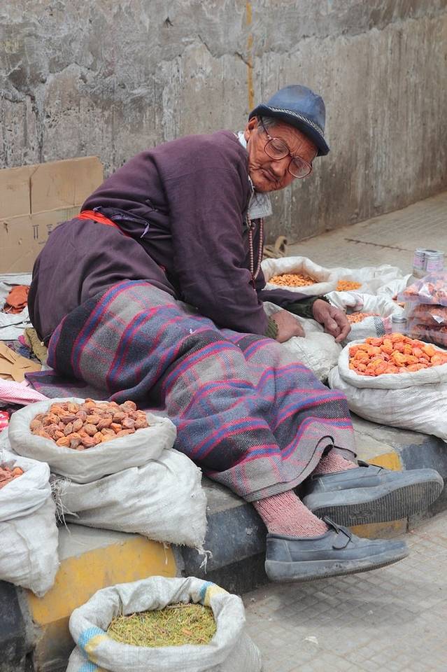 卖干货的当地人闲下来也悠闲的摇着转经筒,其中有些奶片奶糖,看了一下,还是中国货