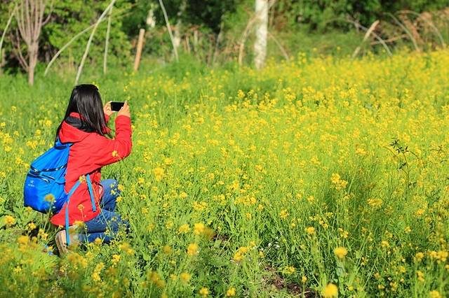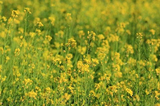 一片盛开的小黄花吸引了我,不知道是不是油菜花。