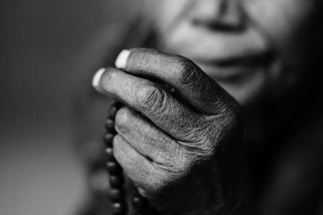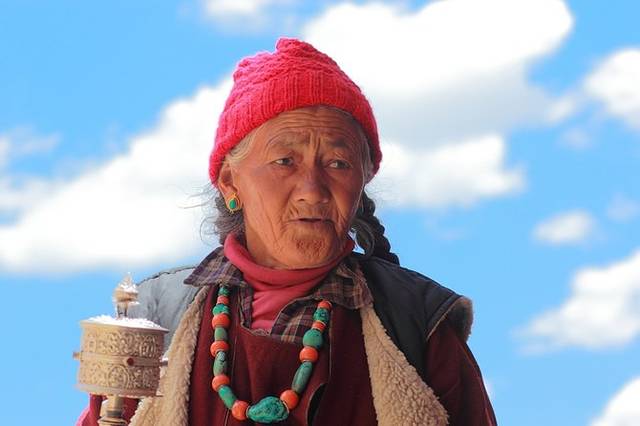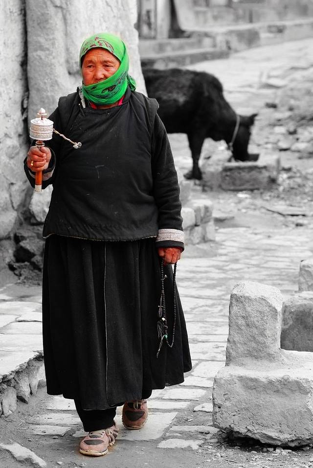 那些虔诚的老人们,有的摇着转经筒,有的捻着念珠,口中默念着什么