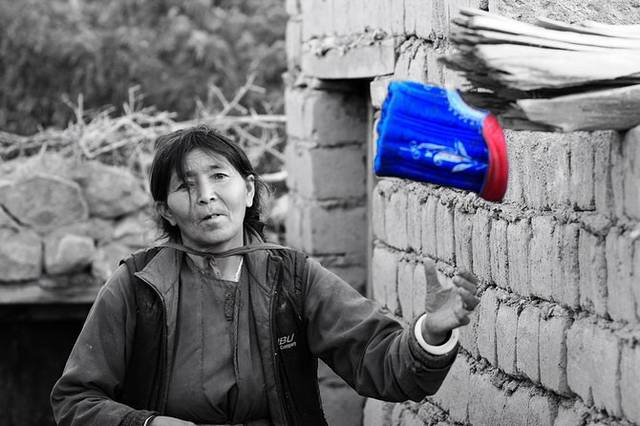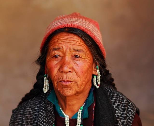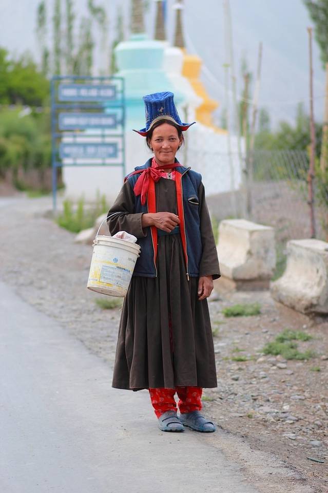 这种高高的帽子是拉达克妇女的传统服饰,由于帽子比较高,进门时会碰到门框,所以进门之前,她们都会放在门前