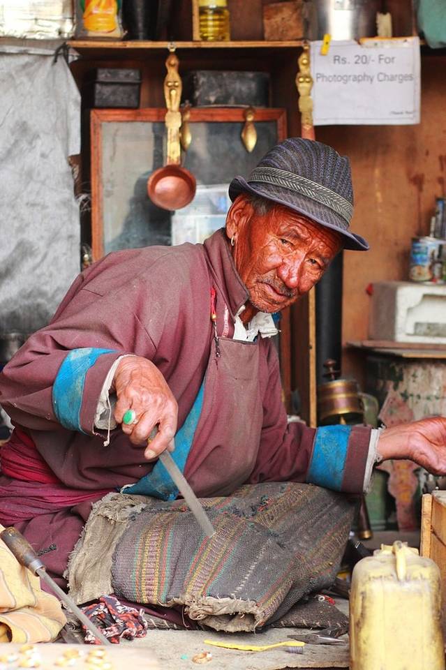 通常看到树墩上,一圈圈的年轮时,会有一种对生命的崇敬之情,游走于列城的小巷子里,偶然看到一位拉达克的藏式传统手工艺人,熟练的操作着各种工具,用沧桑的手打造一枚戒指。