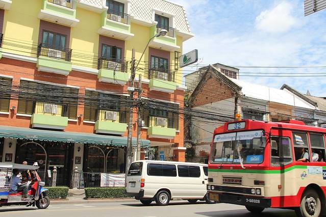 一早在酒店门前拦了一辆双条车,,人均20B送我们到下一家酒店,Sea Me Spring Too Hotel,就在海边哟。